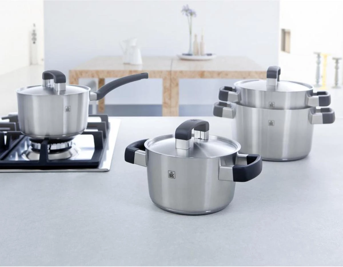 Voor alles wat gekookt of opgewarmd moet worden heeft deze pannenset een geschikte pan. Gebruik de BK Conical Cool Kookpannenset – 4 delig voor het koken van soep, groenten of sauzen. De kookpannen zijn vaatwasmachinebestendig.