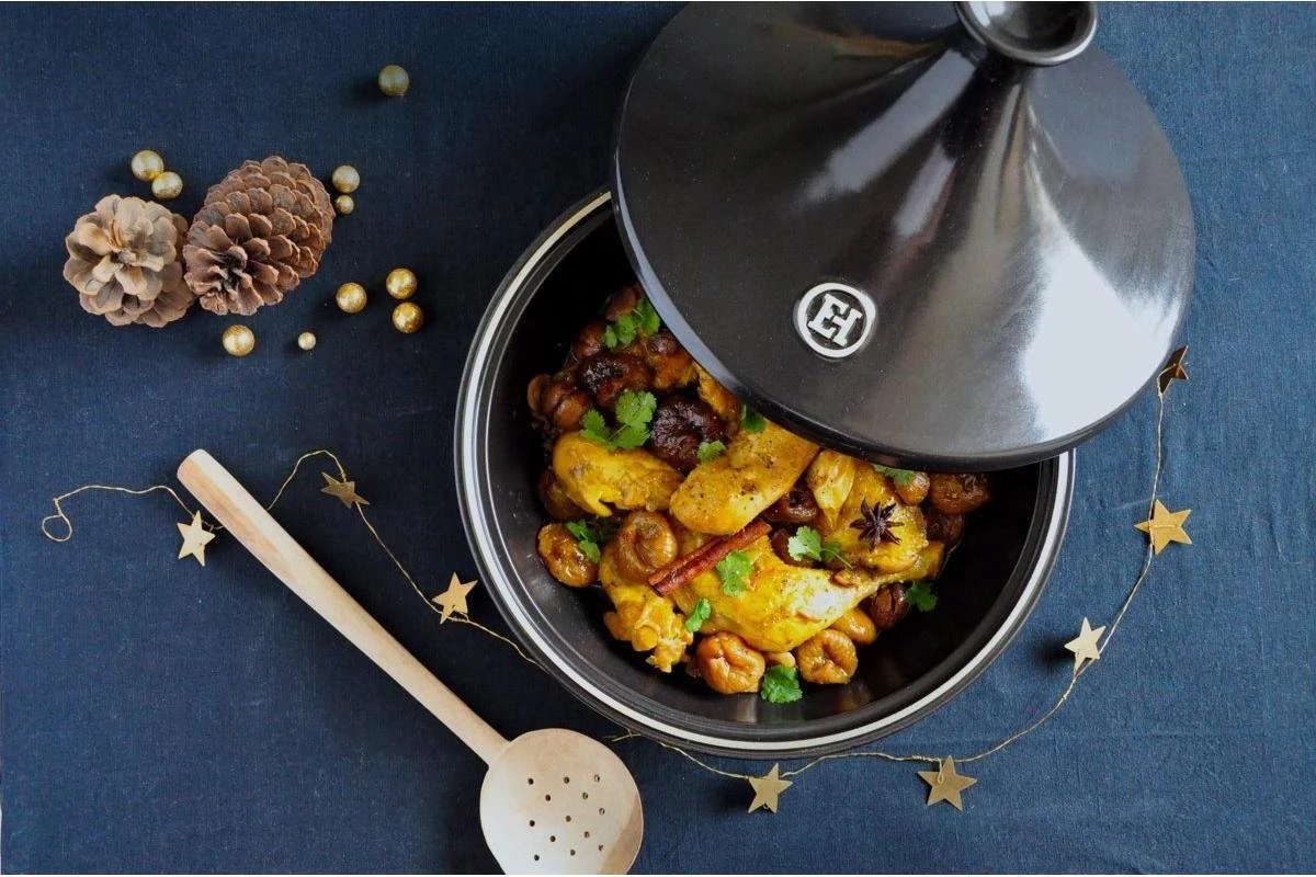 Ervaar de smaak van Noord Afrika. Lamsvlees. kip of vis met saffraan, koriander of cinnamon. De tajine van Emile Henry is een schaal met een deksel die op het vuur wordt gezet. Door de vorm van het deksel wordt het gerecht gelijkmatig gaar gestoomd. Zo kun je gerechten langzaam garen voor optimaal smaakbehoud. De schaal blijft langdurig warm bij het serveren aan tafel.