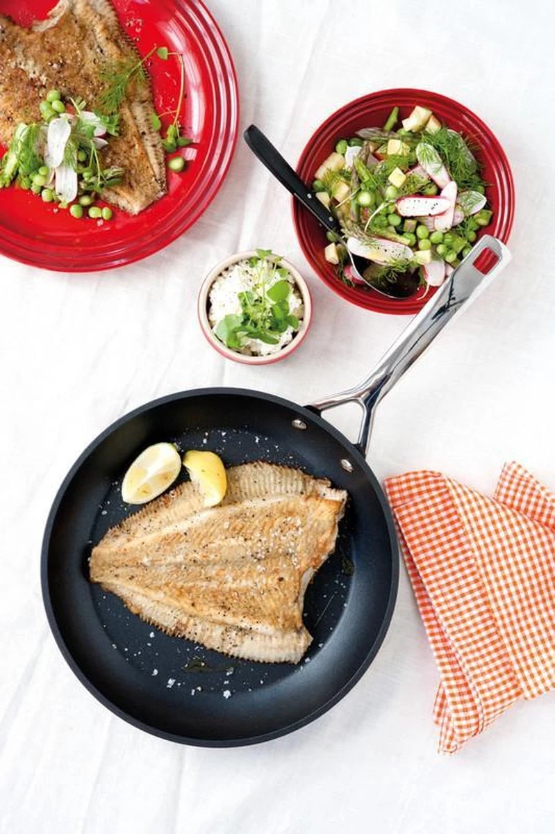 Le Creuset Koekenpan Les Forgées TNS Ø 22 cmDeze Le Creuset Koekenpan Les Forgées TNS met een diameter van 22 centimeter is perfect voor dagelijks gebruik. Deze koekenpan is geschikt om producten met eiwitten en zetmeel te bakken, zoals ei, aardappels en vlees. Voor een lekker biefstukje raden we je aan om die in een gietijzeren pan te bakken, omdat die pannen heter worden dan de Les Forgées pannen. Aan de binnenkant is deze koekenpan voorzien van de beste antiaanbaklaag ooit. Deze antiaanbaklaag kan alle vormen van bakken aan, zelfs zonder vet of olie. De geharde laag laat voedsel eenvoudig los, waardoor de pan gemakkelijk schoon te maken is.