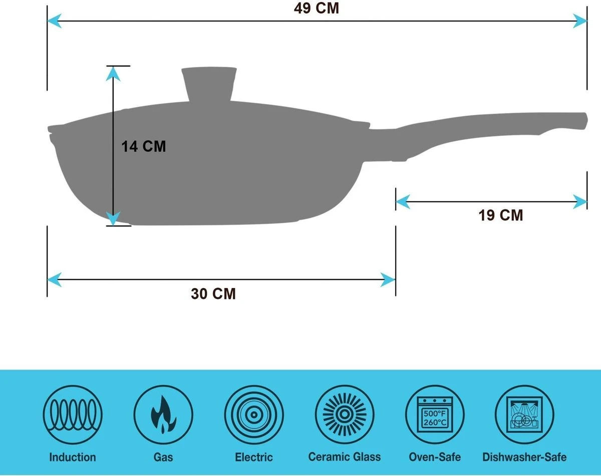 Marble Coating Wokpan is ideaal voor veilig en gezond koken, voor het snel wokken van groenten, vis, vlees of gevogelte.
