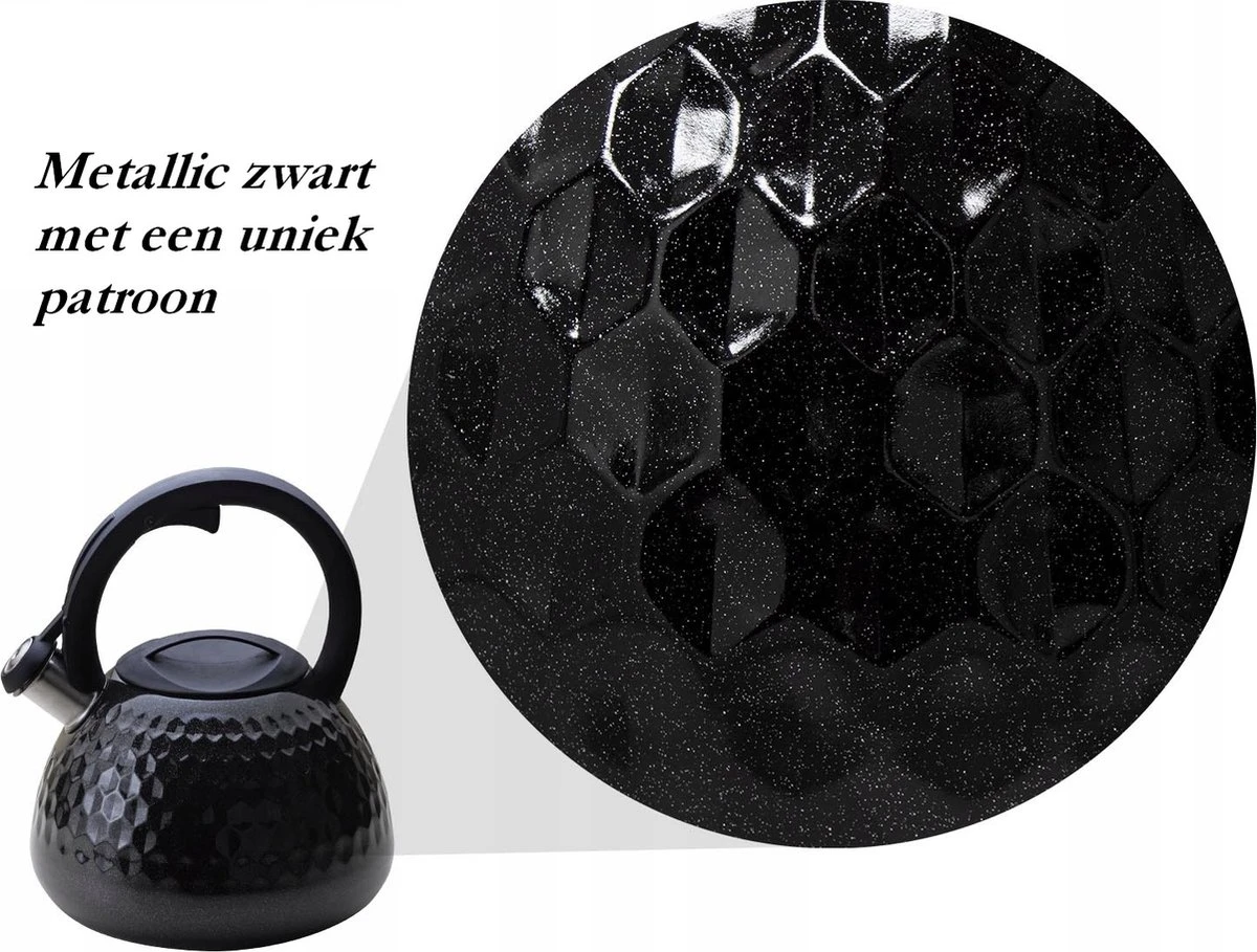 Opzoek naar een nieuwe pronkstuk in je keuken? Zoek niet verder! Het is geen straf om deze fluitketel op je aanrecht te laten staan. De metallic zwarte kleur samen met het ruitpatroon geven hem een modern uiterlijk maar zal ook niet misstaan in een klassieke keuken. De fluitketel is voor iedereen beschikbaar aangezien die voor alle warmtebronnen geschikt is.