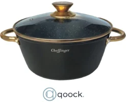 Cheffinger Pannenset – 10 Delig – Marmeren Coating – Inductie – Met Glazen Deksels – Zwart