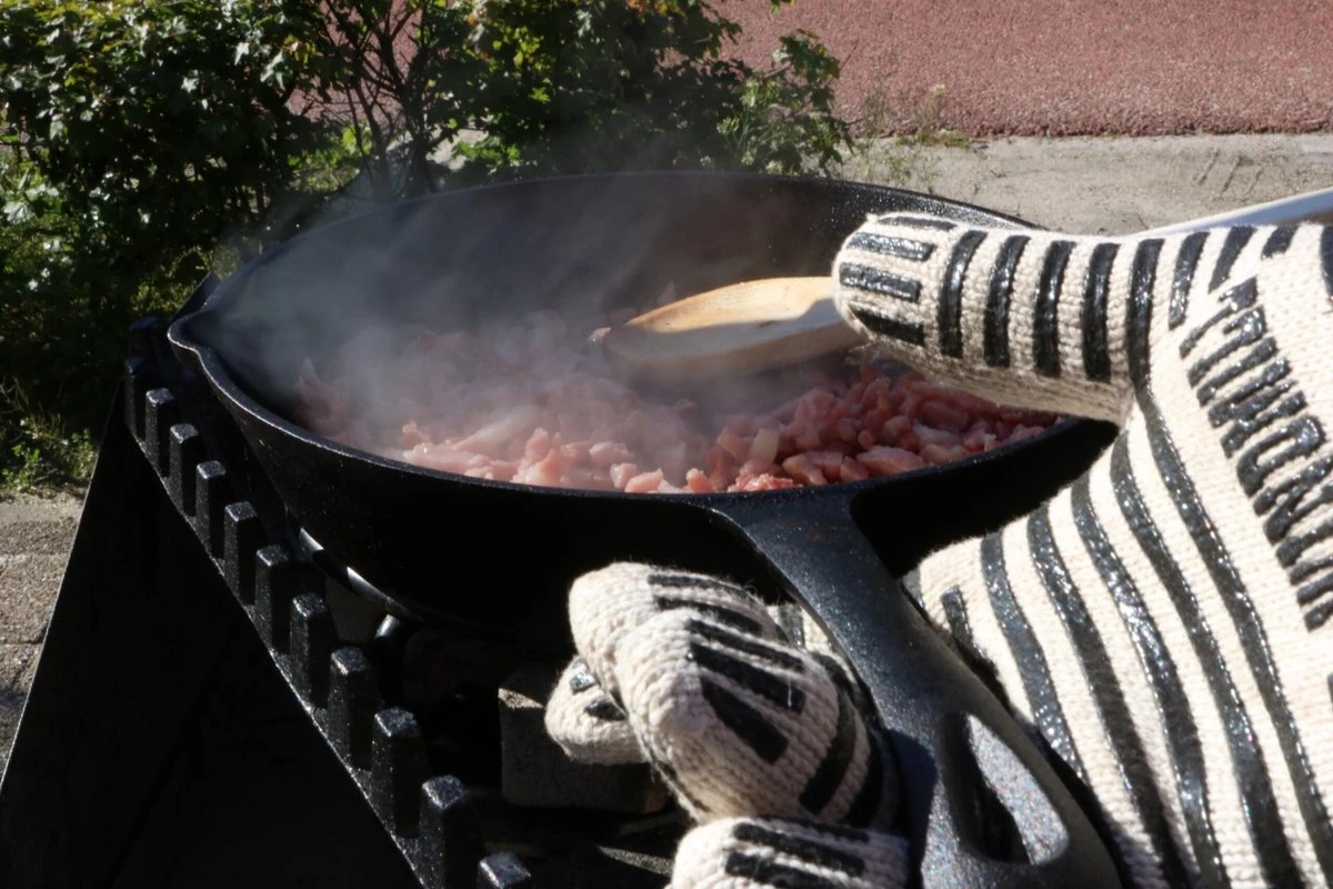 Met deze skillet kan het niet meer fout gaan. De warmte wordt mooi verdeeld over het hele kookoppervlak, perfect. Of ik ‘m nu op de bbq plaats of boven een vuurkorf, mijn ei is altijd een succes, nu die van jou nog! Deze skillet van The Windmill Cast Iron is bruikbaar op gas, inductie, open vuur en op de barbecue. De pan heeft een platte bodem en is daardoor makkelijk op het rooster van de barbecue te plaatsen. In combinatie met een trivet kan deze pan boven kolen of briketten geplaatst worden. Ook heeft de pan een schenktuit aan beide zijkanten.